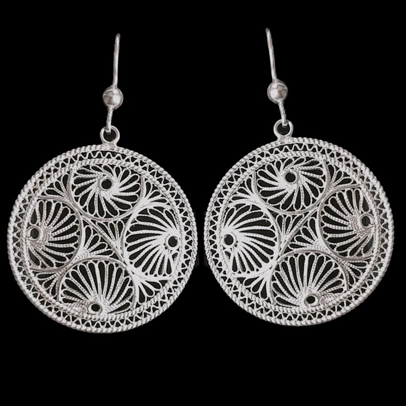Los pendientes largos de filigrana en plata Crazy, destacan por su intrincado diseño en forma de un círculo cuidadosamente elaborado.